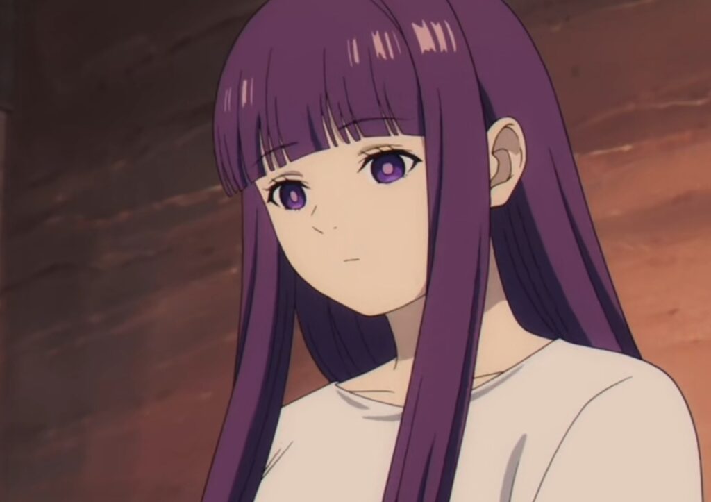 Fern por su lado termina muy nerviosa y también le pide a Frieren consejo pero se rinde rápido al saber que no sabe nada la señorita Frieren, por lo que se va a dormir sin decir nadamas.