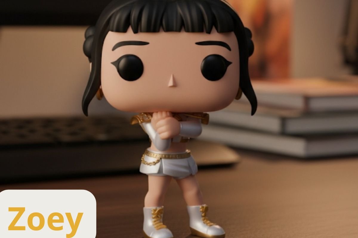 La hermosa “Zoey” es plasmada en un Funko POP de resina personalizado, podrás hacer cambios con el vendedor através del chat de Mercadolibre. Cuenta con su caja, una base interna y te incluirá un póster de regalo y un pin.